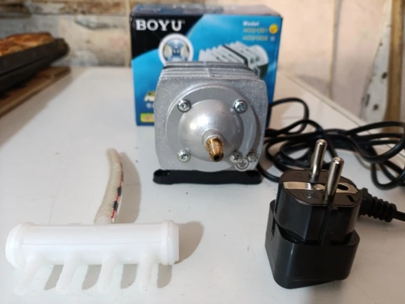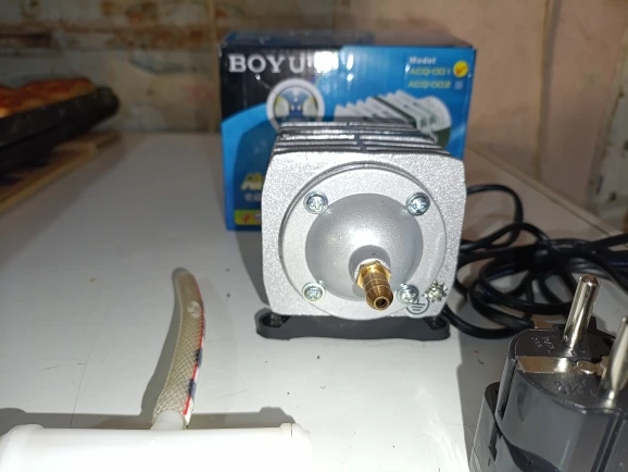There is nothing to check the performance of the compressor, but it works without problems. Really this is my first compressor of such a plan and I am somewhat saddened by the nature of such devices. The air is released by Pulse, 25 times per second. For laser cutting, I would use a two-piston aquarium, at least. Its air output is more uniform. For the sake of experiment, I bought two identical compressors from this seller, combined them and turned them on in antiphase. The result is still unsatisfactory: the productivity, according to the feeling, has not doubled, although it has increased (design features seem to affect), although in terms of the stability of air delivery it has become noticeably better.