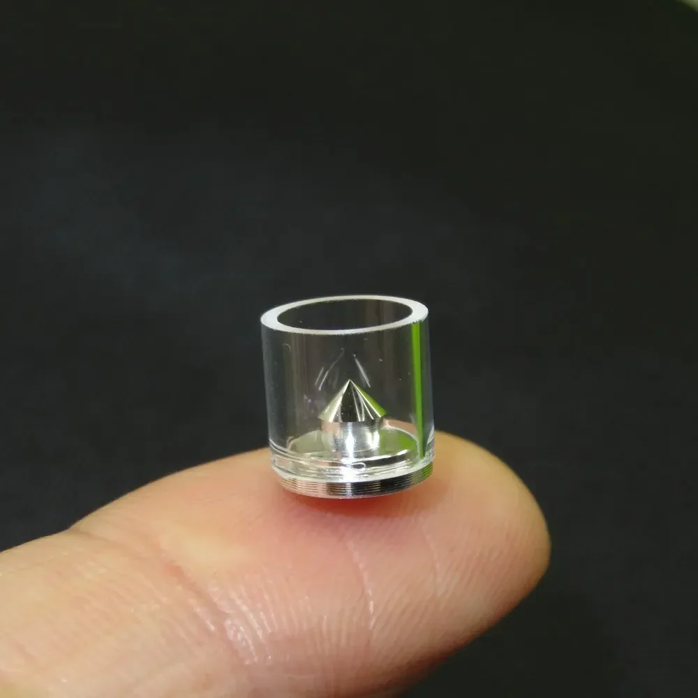This is a reflecting cone lens, it can be fixed before a laser dot module /product, so as to cause circle laser line.