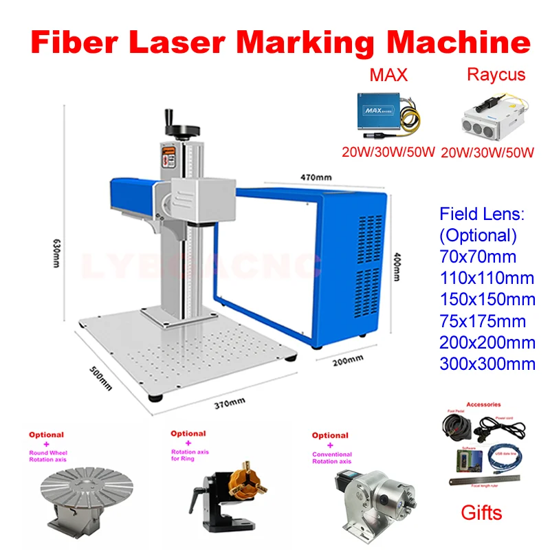 50W Raycus Separated Fiber Laser Marking Machine 20W 30W Max Nameplate Engraving With Rotary Axis