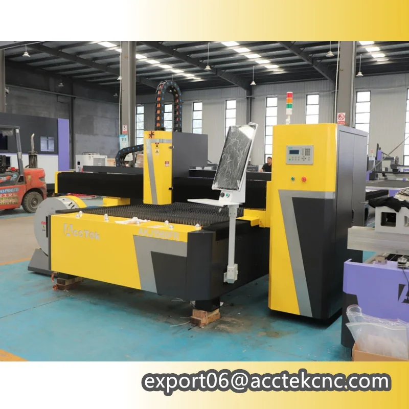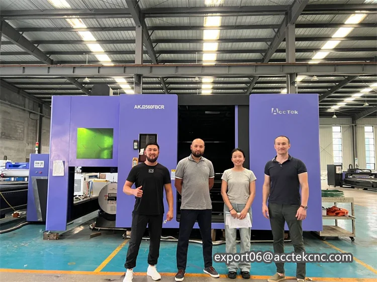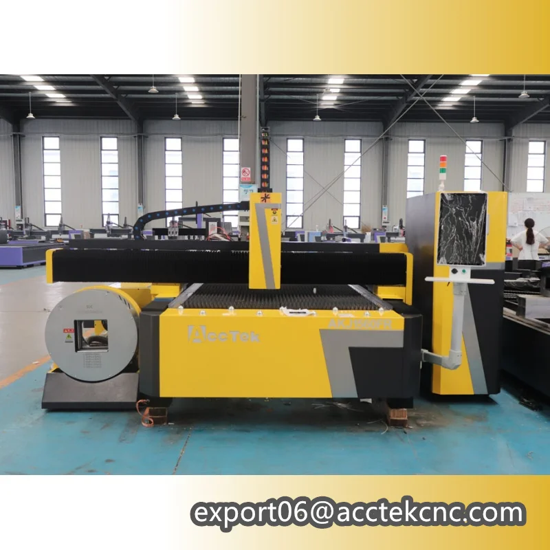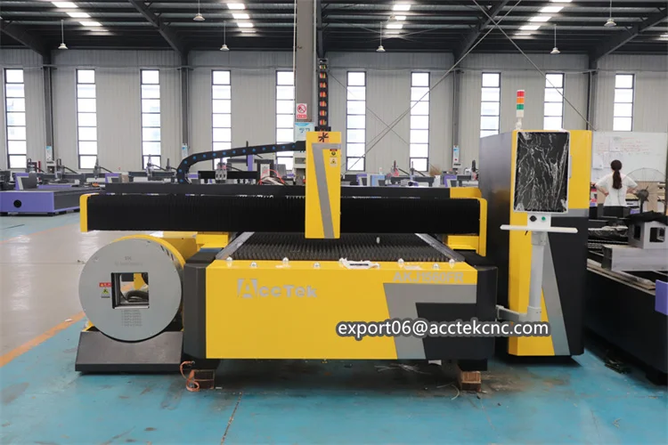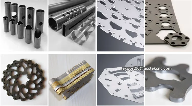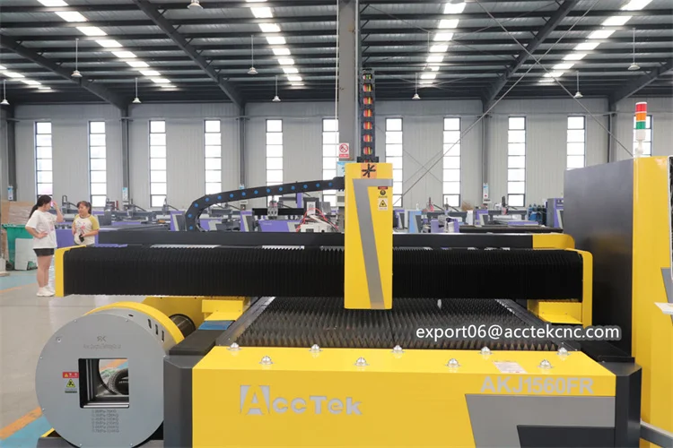 Acctek AKJ-FR series fiber laser cutting machine can not only cut metal plates,but also metal pipes. It has many uses and can save the space of more than 50%,which effectively improve productivity.