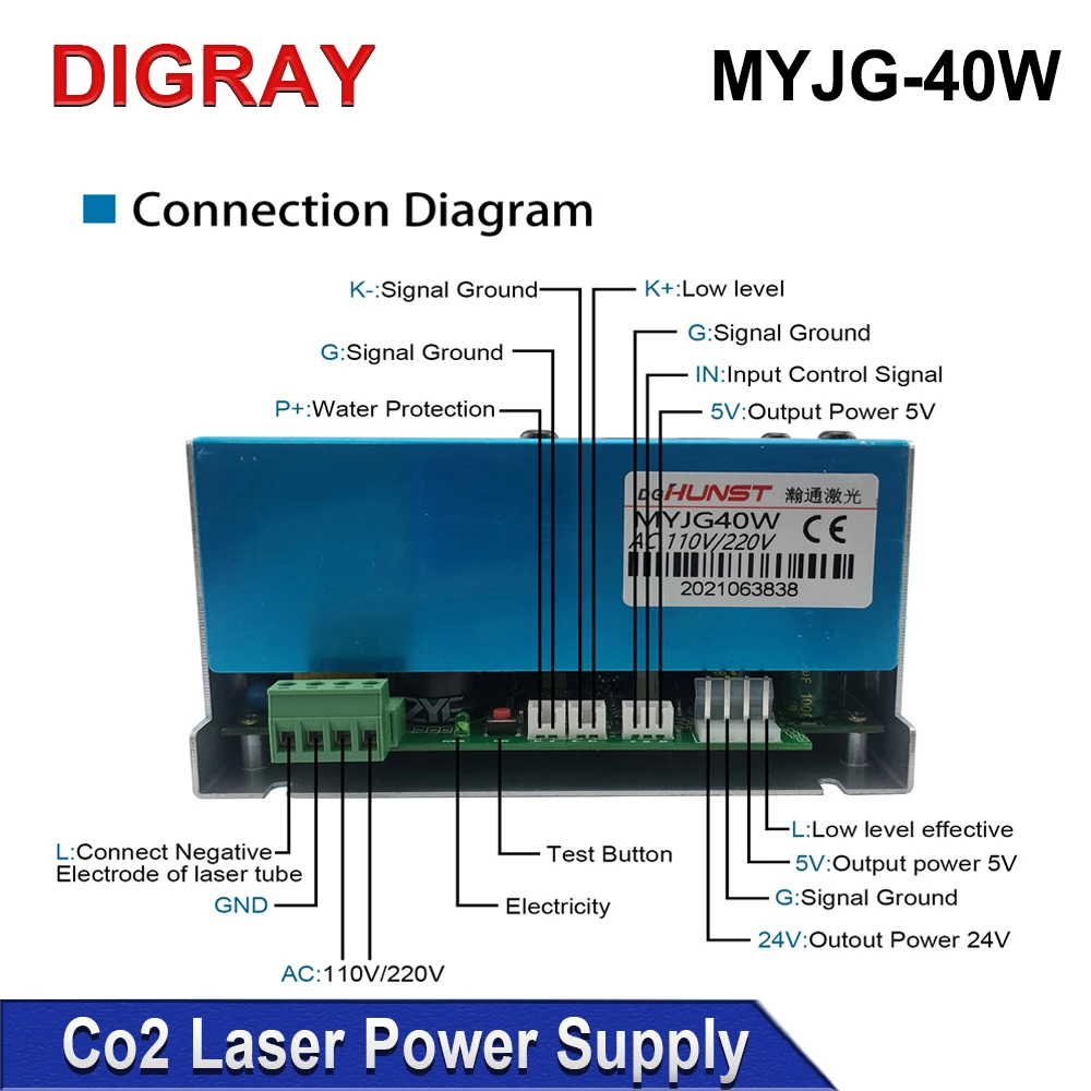Note: The default voltage of the 40W laser power supply is 220V. If your laser machine voltage is 110V, please adjust this product to 110V. (40W has a voltage adjustment button)