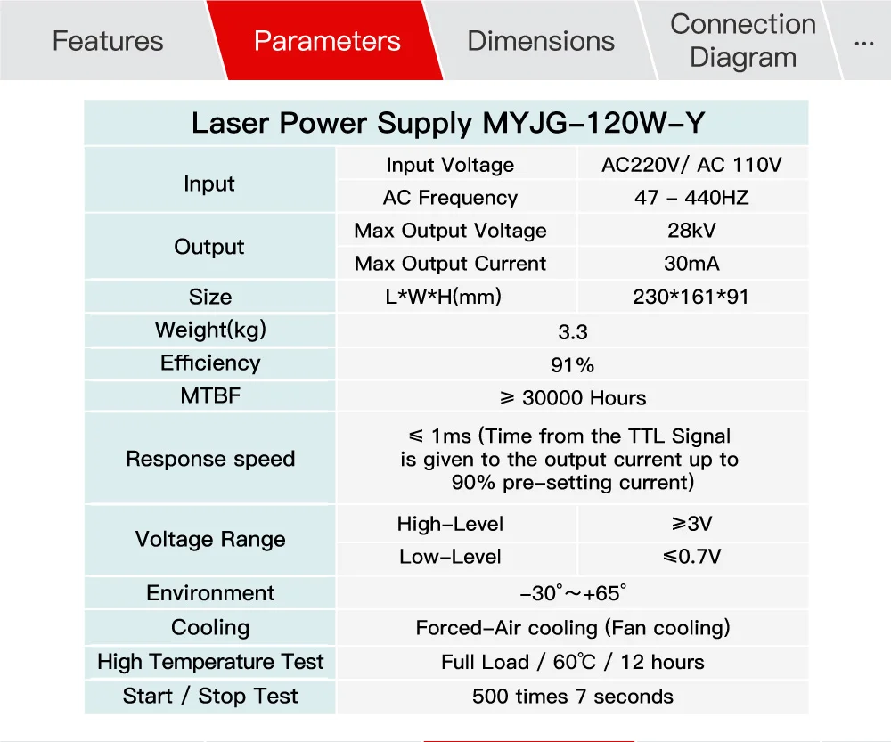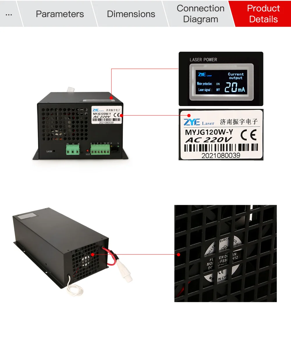 FONLAND 120W Laser Power Supply Source MYJG-120W 110/220V With Display Screen for Co2 Laser Tube Cutting Machine Sourc