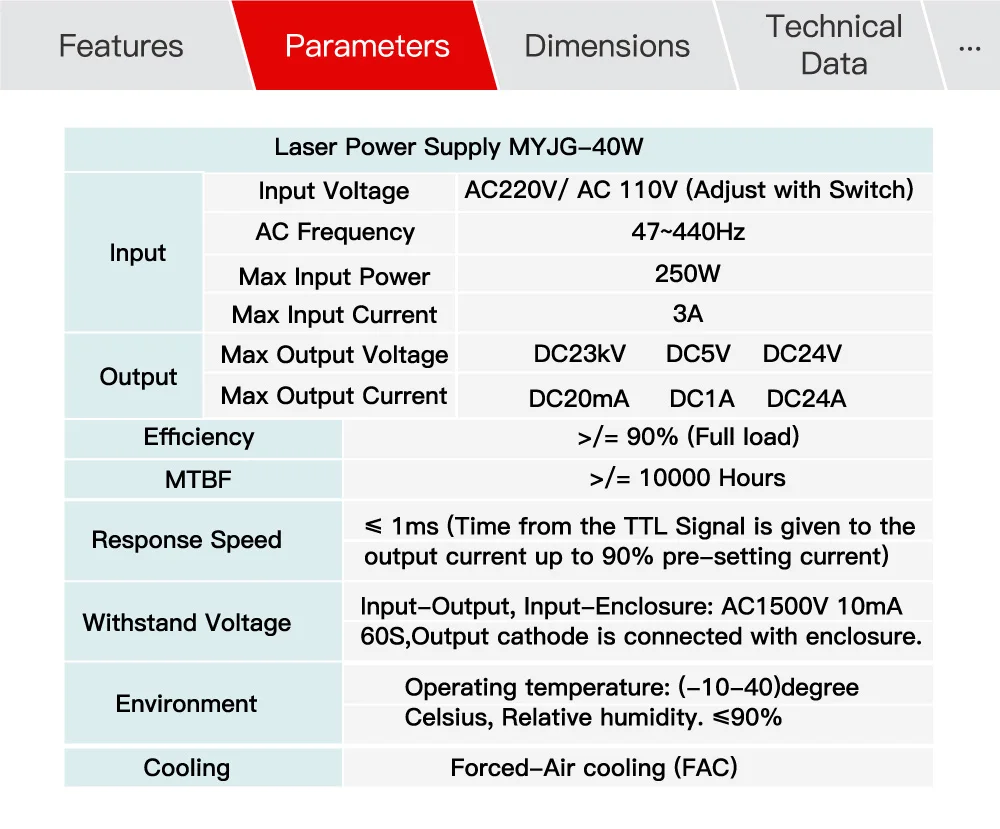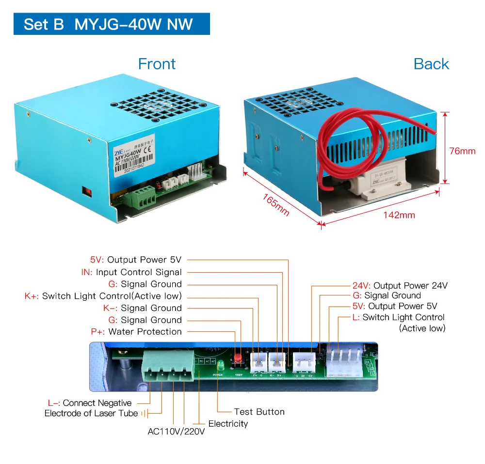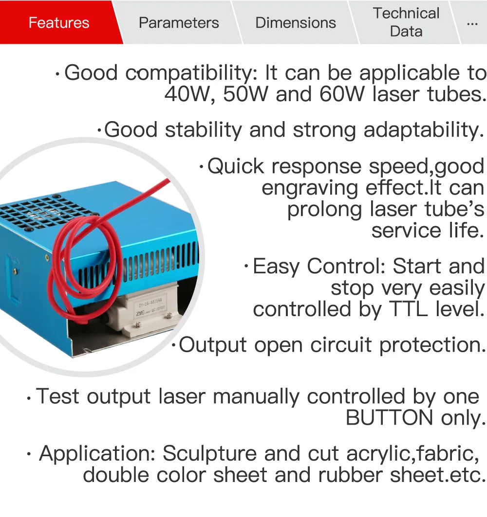 FONLAND 40W CO2 Laser Power Supply MYJG-40W NG 110V/220V for Laser Tube Engraving Cutting Machine