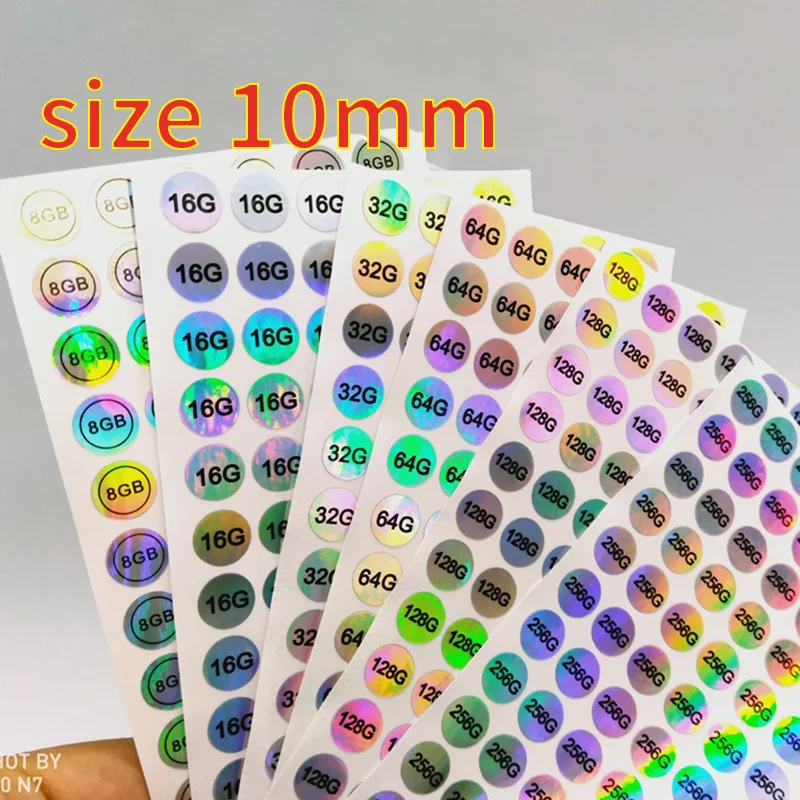 Free shipment 10X10mm 1000 8GB 32GB 64GB memory capacity sticker Mobile phone computer label sticker laser waterproof sticker