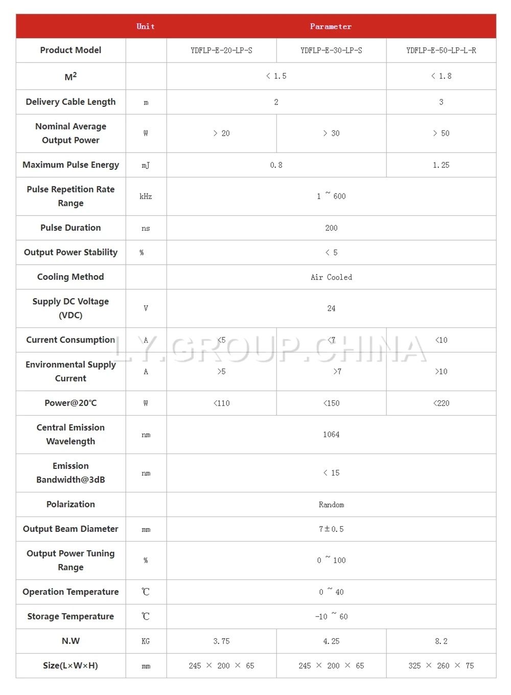 Maximum Pulse Energy 0.8MJ(20W/30W) 1.25MJ(50W)