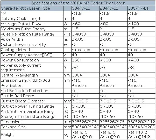 Characteristic Laser Type | 60-M7-L1 | 80-M7-L1 | 100-M7-L1 | |