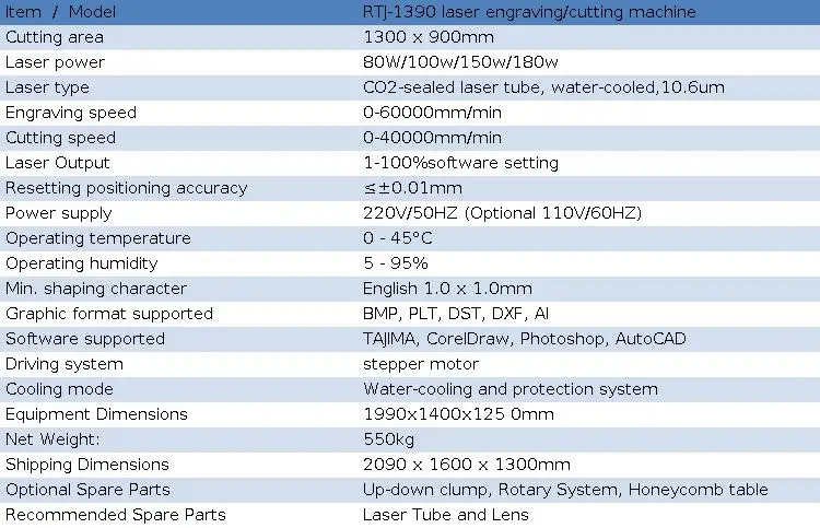 5. Laser Power 40W~180W, good quality and stable output to prolong the laser tube service time.