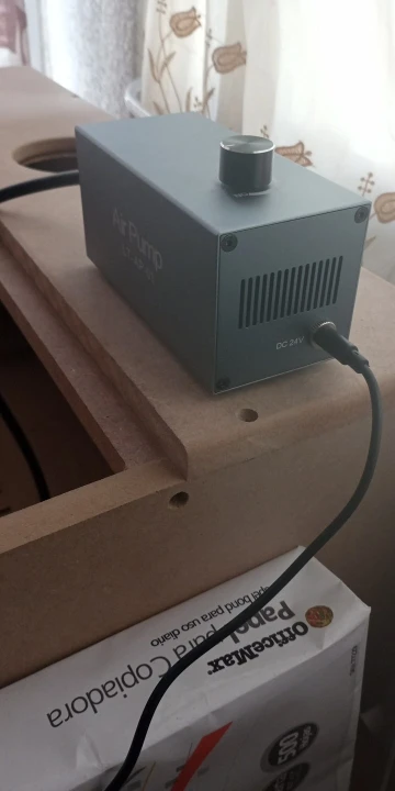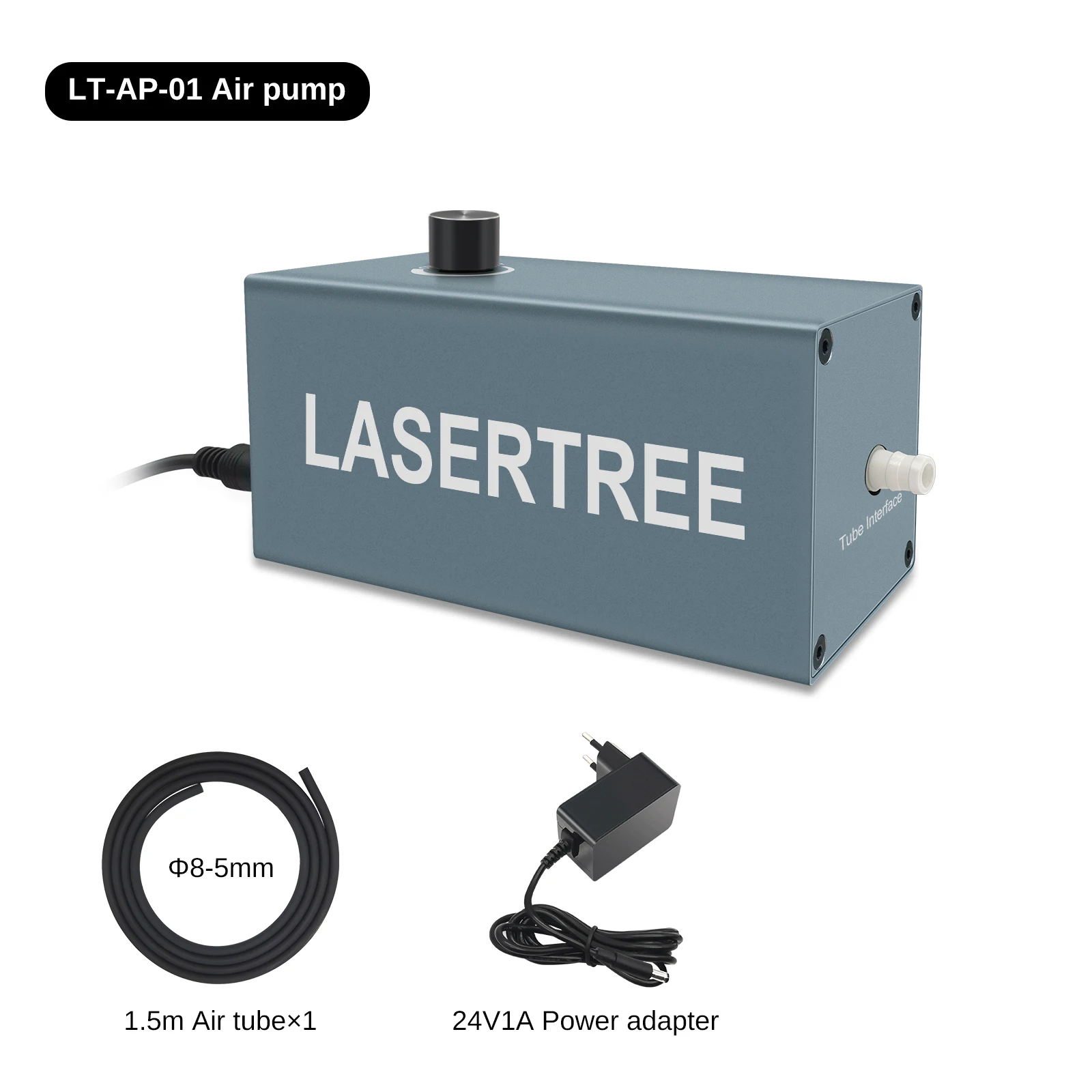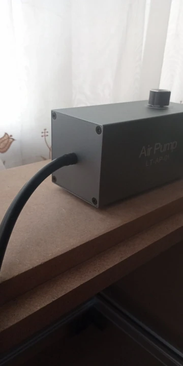 This air pump is made of a high-quality aluminum shell, which is easy to maintain. It is fully compatible with the LASER TREE laser module. There are 4 rubber feet to reduce noise and vibration in operation. High stability design to maintain stable airflow output even after a long working time.