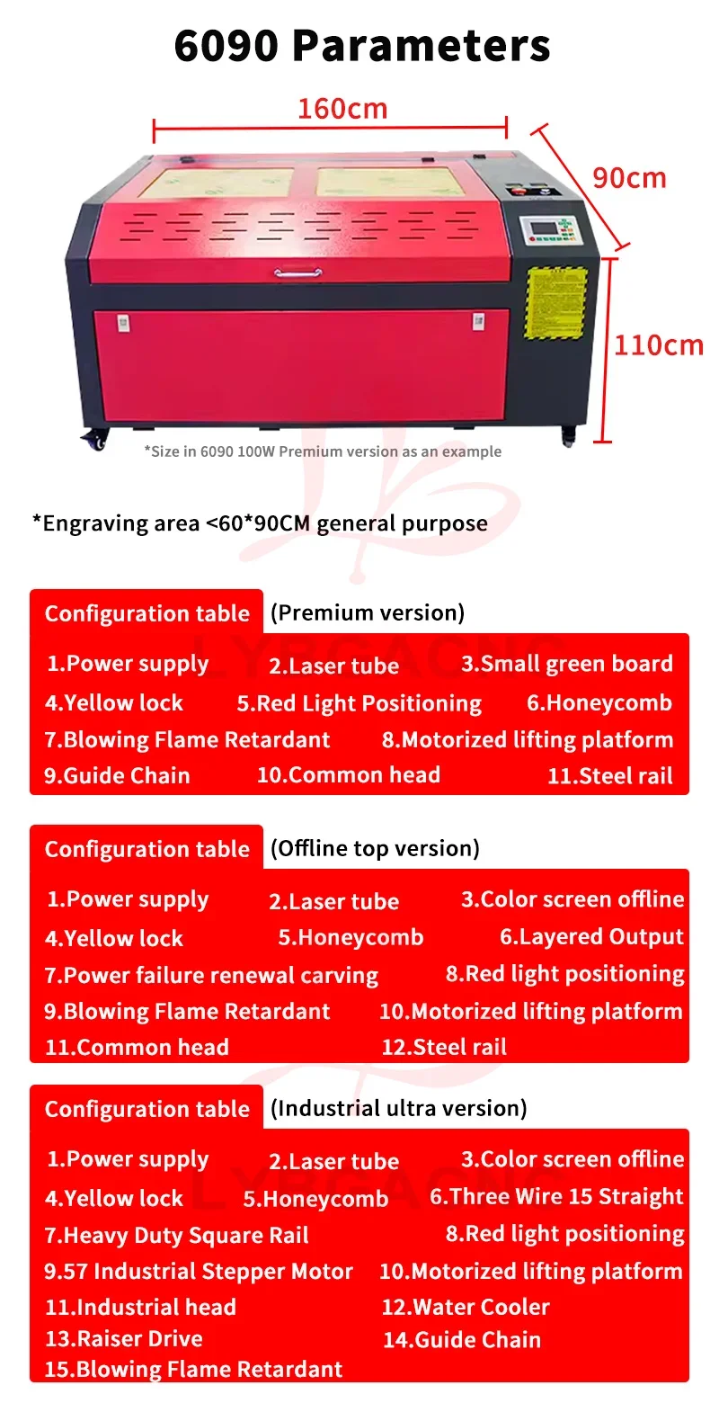 Laser power : 40W/50W/60W/80W/100W/130W/150W