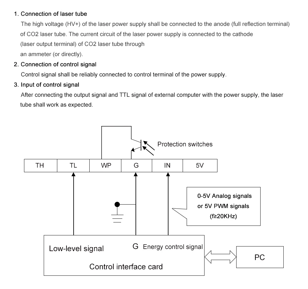 1.YL-U1 is the standard power supply for Yongli 80W-100W CO2 laser tubes